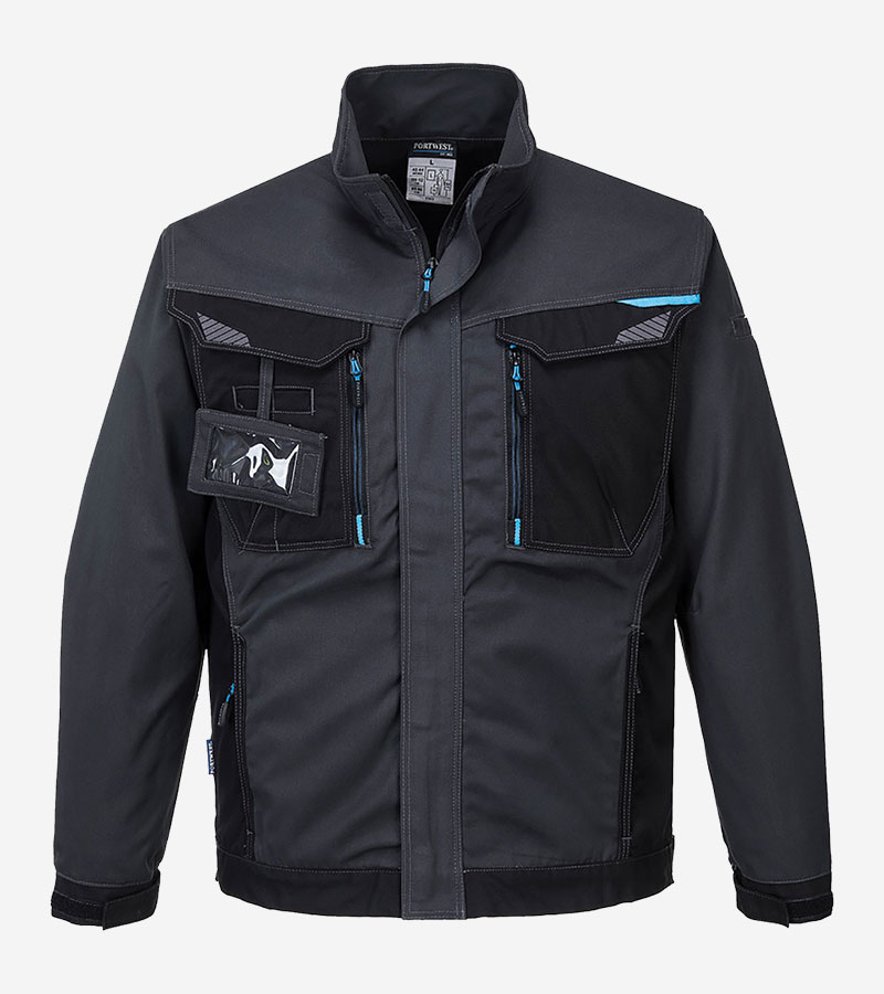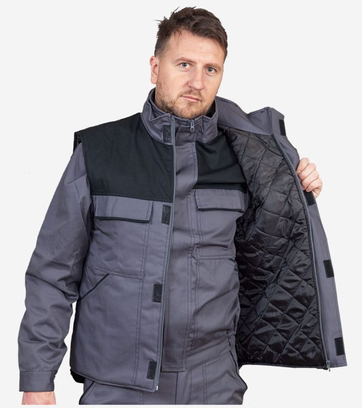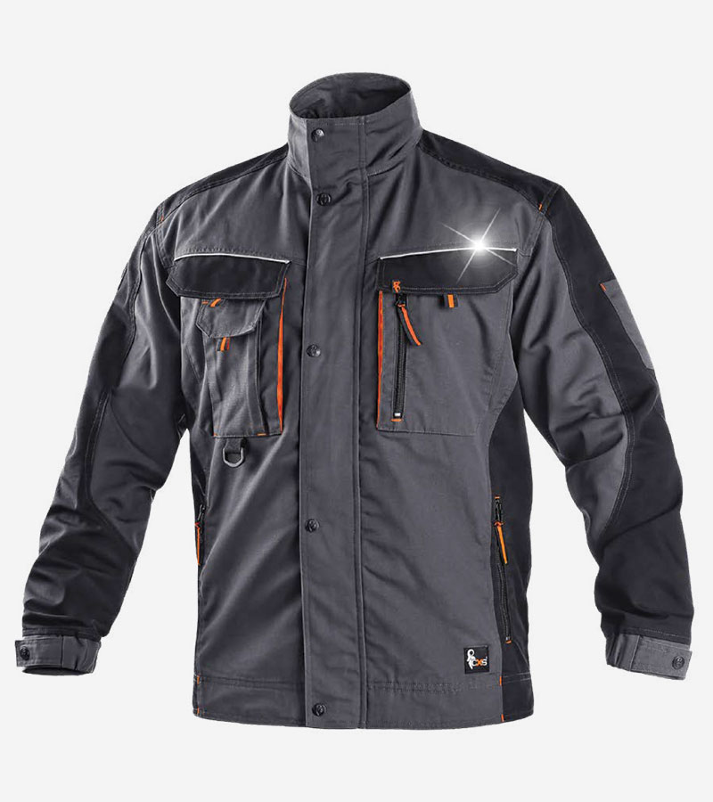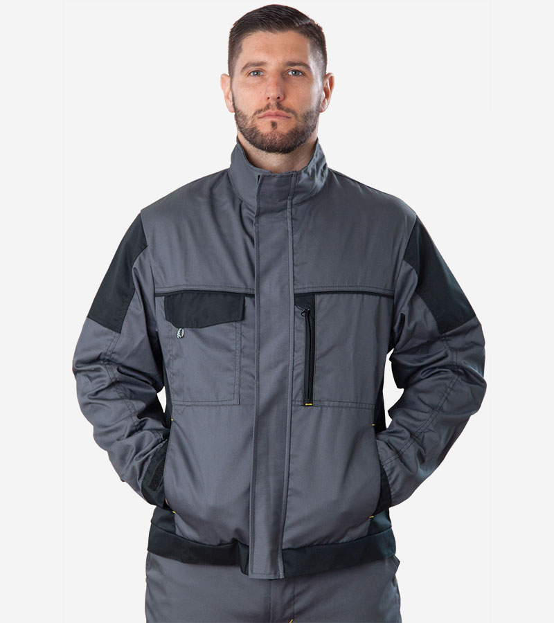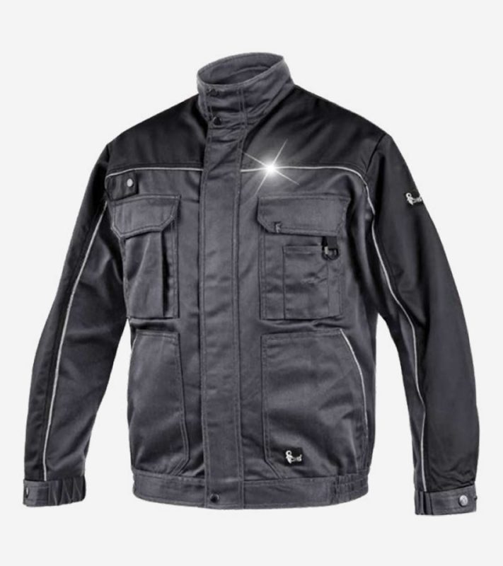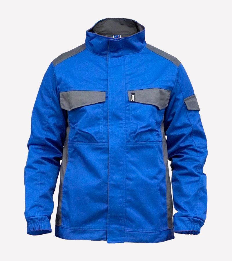 Radna jakna namjenjena je za rad u sredinama u kojim prijeti opasnost od izvora toplote, posebno prilagođena za obavljanje poslova zavarivanja i srodnih procesa. Atestirana tkanina