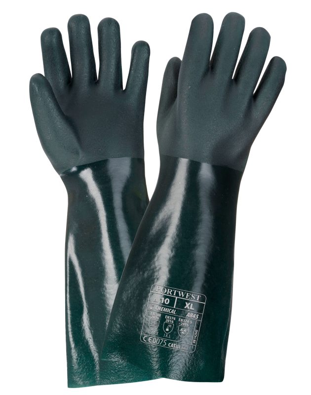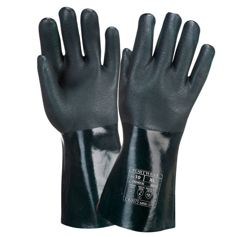 Rukavice za zaštitu od kemikalija sa dvostrukim PVC premazom i sandy završnom obradom na dlanu, za poboljšan hvat