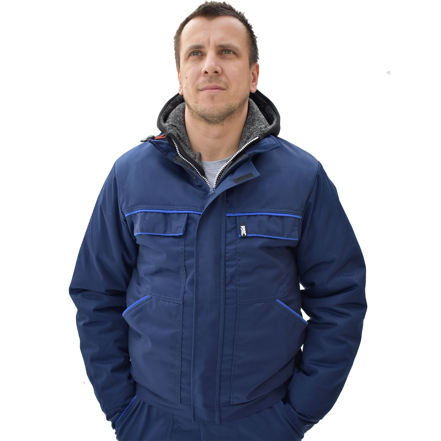 Futrovan zimskimodel sa paspulima u drugoj boji• obična kragna • zakopčavanje pomoću patent zatvarača u boji paspula, sa šob lajsnom • leđa iz jednog komada • prednjice iz dva dijela, presjek iznad džepova • poluelastičan pojas • neelastične manžetne podešenje pomoću čičak trake • dva gornja našivene džepa sa patnom i paspulima • dva našivene otvorena džepa dole sa paspulom na otvoru