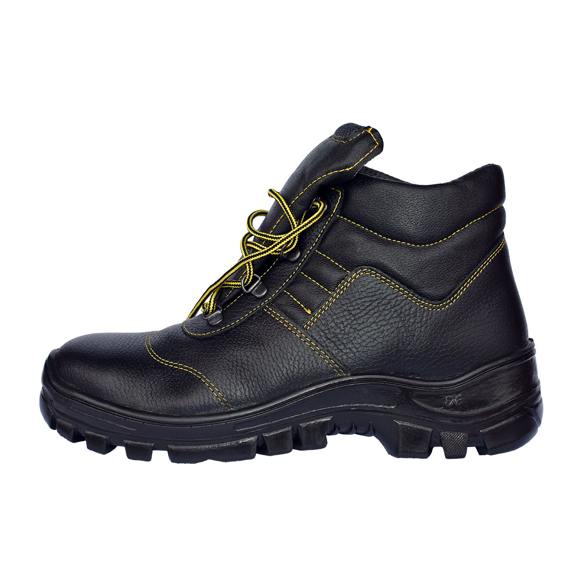 Duboka radna cipela na pertlanje izrađena od prirodne juneće vodoodbojne presane kože.
