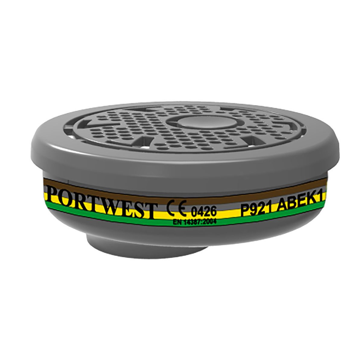 Filter tipa ABEK klase 1 za zaštitu od organskih i anorganskih kiselih plinova i para, sumpornog dioksida, amonijaka i njegovih derivata, gdje je tačka ključanja veća od 65°C. Sigurna veza putem poseban Portwest bajonet sistema