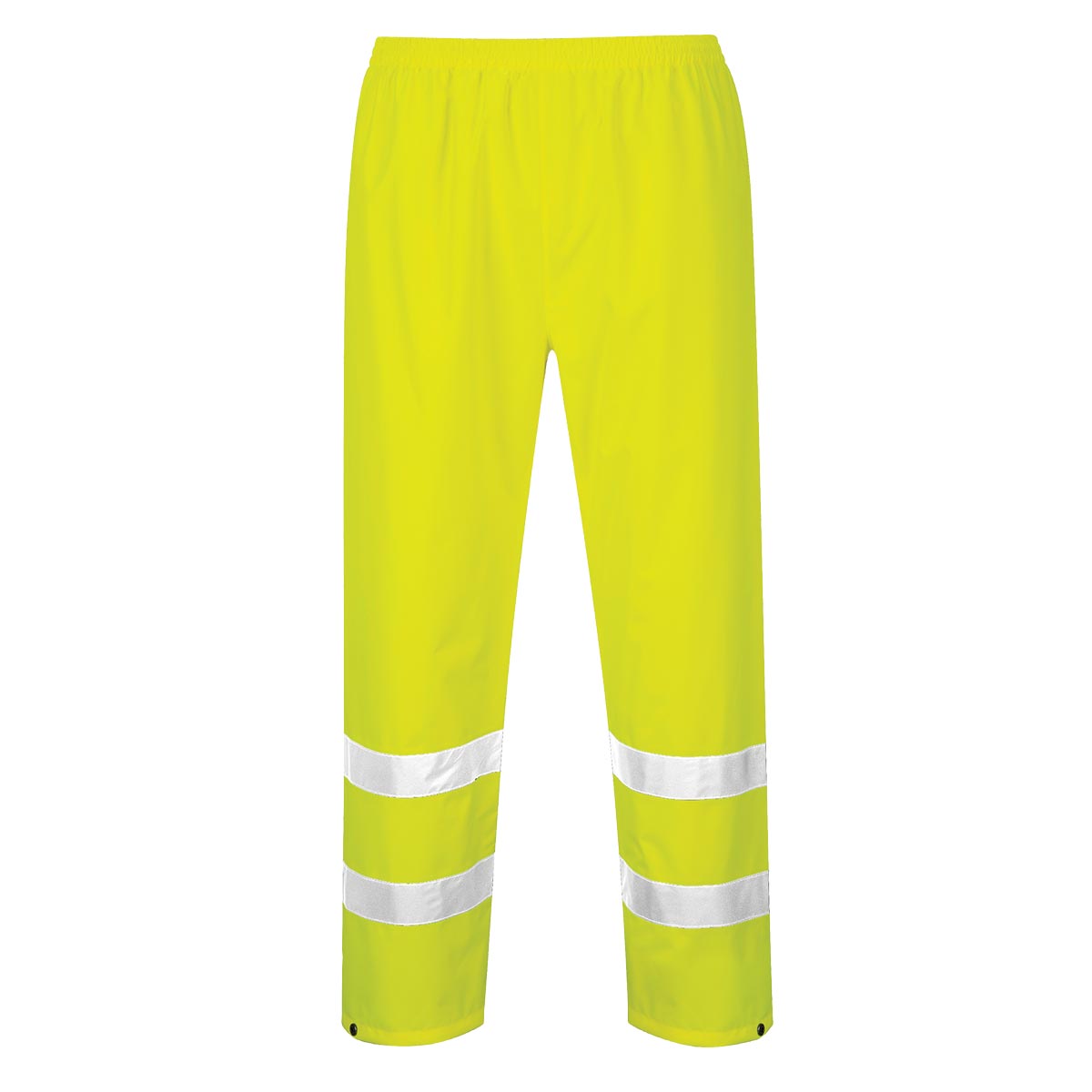Lagane i prektične HiVis hlače, mogu se nositi preko druge radne odjeće za potpunu zaštitu od vode. Izrađene od materijala sa UPF 40+ ocenom koji blokira 98% UV zraka i PVC premazom u skladu sa REACH propisima, te završnom obradom koja je izuzetno otporna na vodu, voda sklizne sa površine. Svi šavovi su dvostruko prošiveni za dodatnu izdržljivost i lijepljeni kako bi se spriječio prodor vode. Elastična traka u struku za izuzetnu odobnost tokom nošenja, te drikerima podesiv porub nogavice. Savršeno se kombinira s HiVis jaknom za kišu H440.