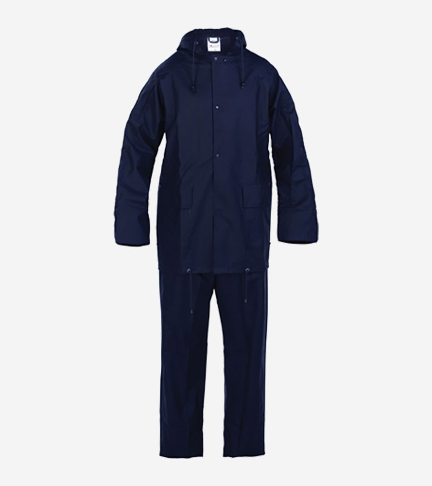 Kišno odijelo od PU/PVC-a na poliesterskoj podlozi. Lagan, fleksibilan i rastezljiv materijal pruža korisniku visokI nivo udobnosti. PU/PVC na poliesterskom nosaču, vodootporni šavovi. kapuljača sa elastičnom trakom i vezicom, zatvaranje rajsferšlusa i zakopčavanje kopčom.