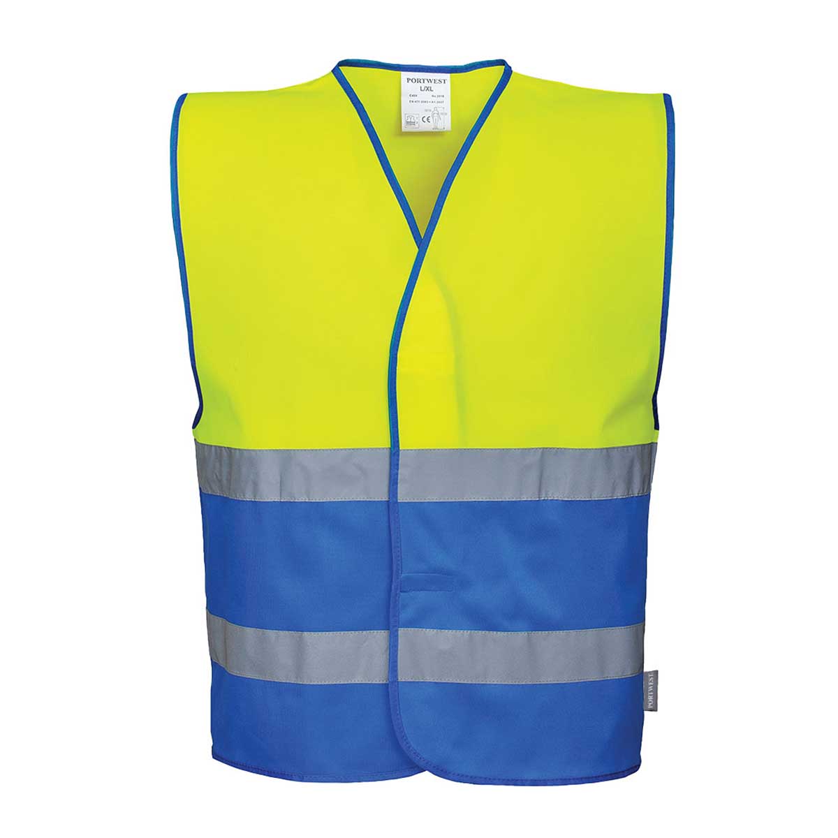 Prsluk u dvije boje sa dvije reflektirajuće trake. Lagan i moderan. Komotno za veću udobnost nošenja, Zatvaranje na čičak traku za lakši pristup, Kontrastna boja za zaštitu od prljavštine, Reflektirajuća traka za dodatnu vidljivost, UKCA oznaka, CE certificirano, Certificirano prema EN ISO 20471 nakon 50 pranja