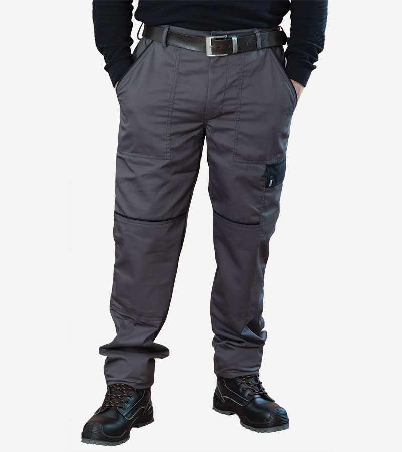 - Bijelo-sivi model sa praktičnom zakačkom za alat na desnoj nogavici