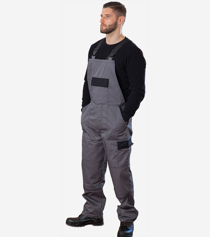 - Bijelo-sivi model sa praktičnom zakačkom za alat na desnoj nogavici