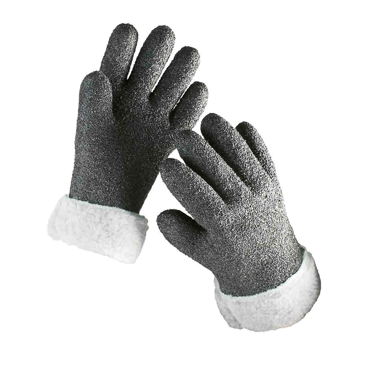 Zimske radne ukavice od pamučne tkanine umočene u PVC, hrapave površine, sintetičko krzno na manžetni, ukupne dužine 27 cm.