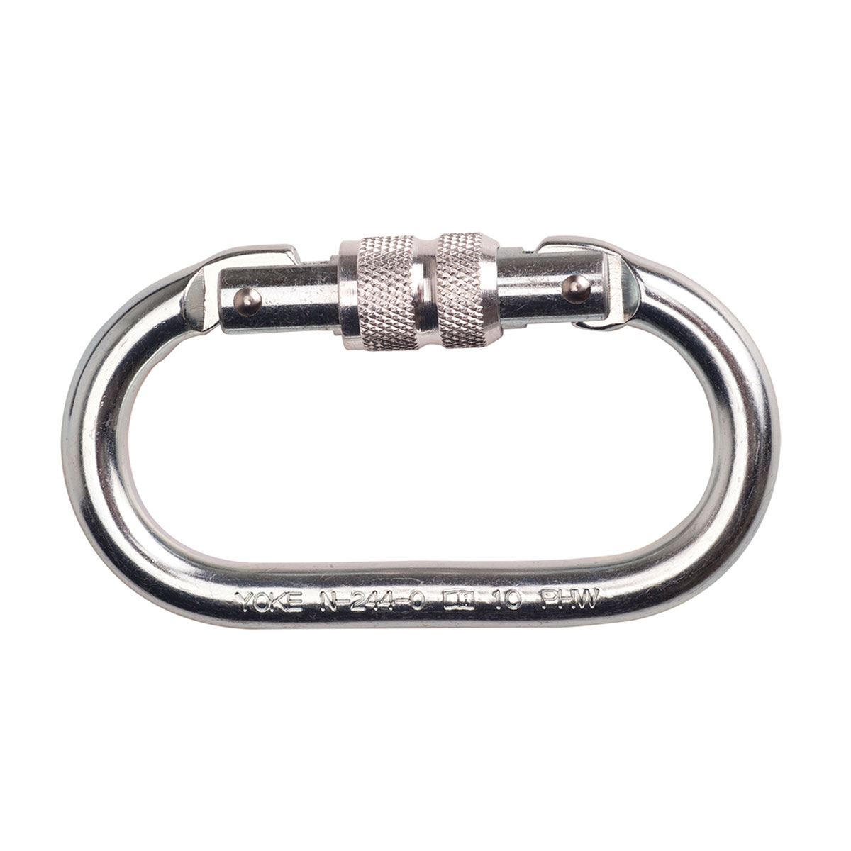 Celični ovalni sigurnosni karabiner sa navojem, dužina 106mm, otvor 19mm. Točka pucanja:25kN