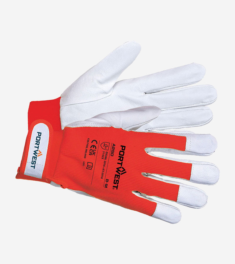 Tergsus A250 su izdržljive rukavice od kozje kože sa zatvaranjem pomoću čičak trake, nadlanicom od pamuka i ojačanim vrhovima prstiju. Pogodne za lake industrijske poslove.